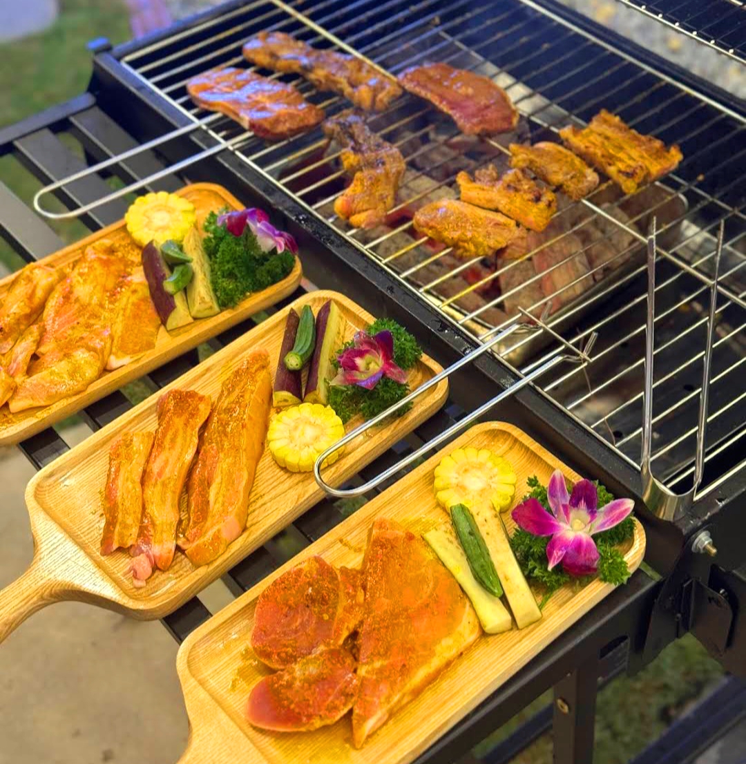 캠핑에 대해서는 잘 모르지만 나무판에 고기 나오는 게 좀 더 캠핑장스러운 걸로 사용했으면 어땟을까 라는 생각도 듭니다.